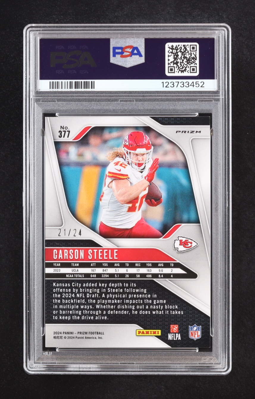 Carson Steele 2024 Prizm Gold Sparkle #377 RC #21/24 (PSA 8)