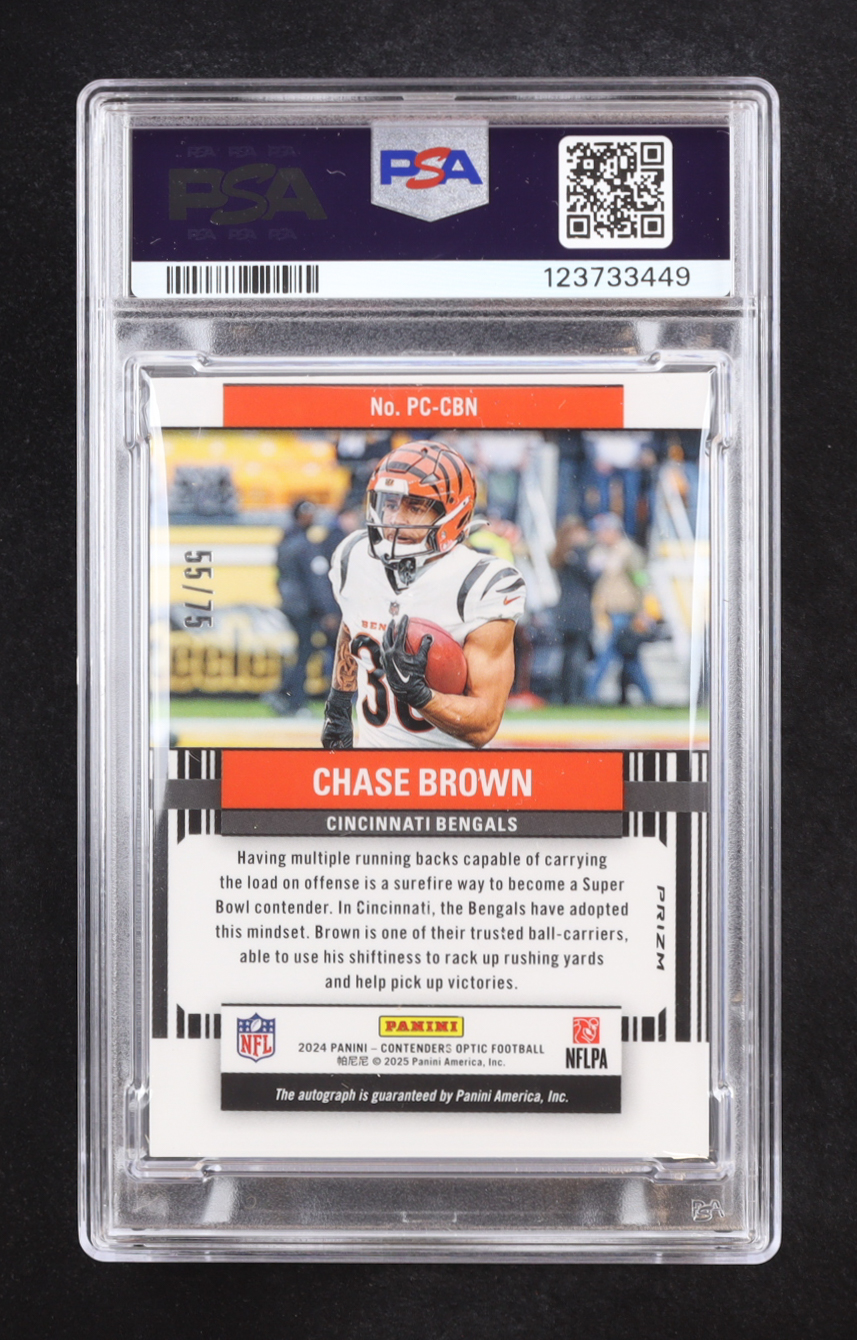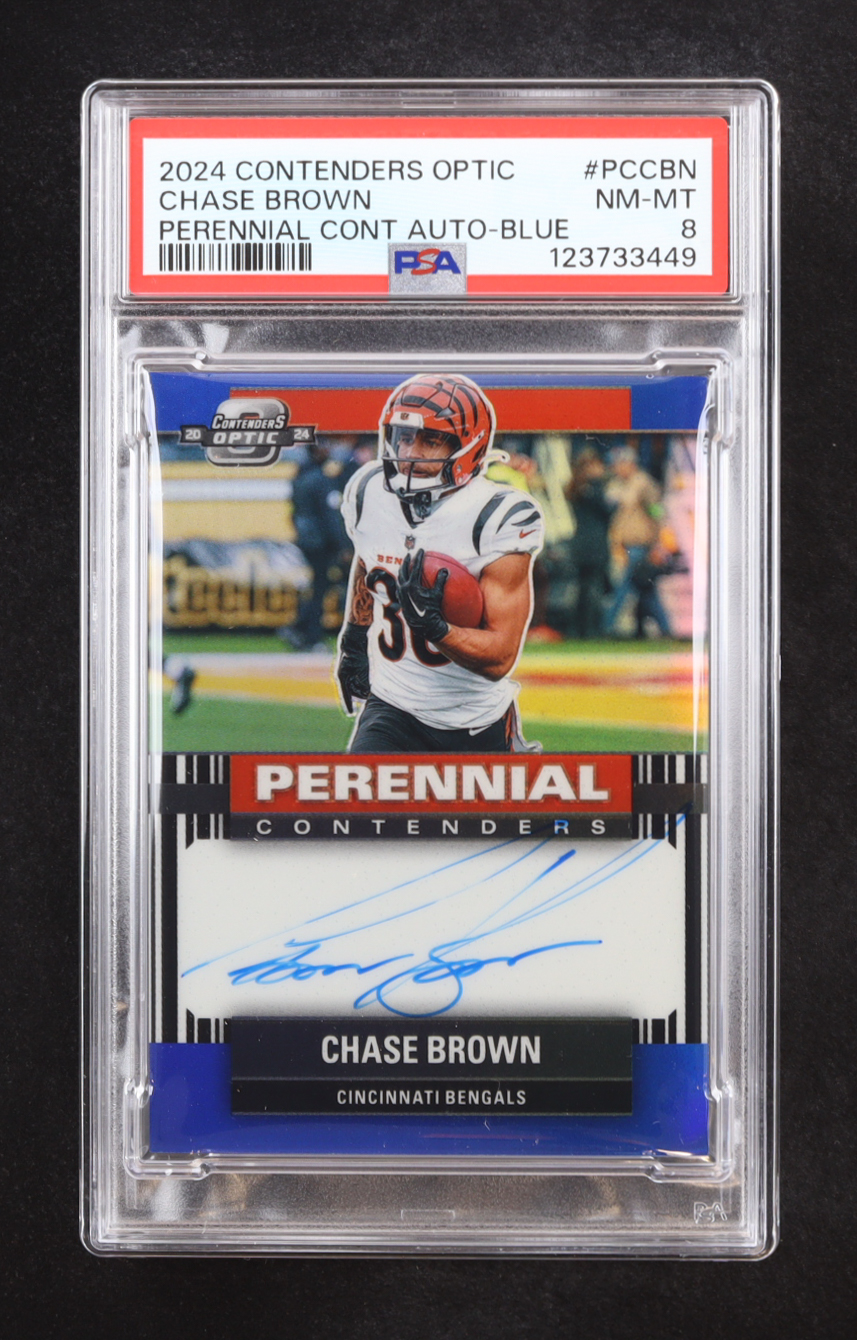 Chase Brown 2024 Panini Perennial Contenders Optic Blue Prizm Auto #PCCBN #55/75 (PSA 8)