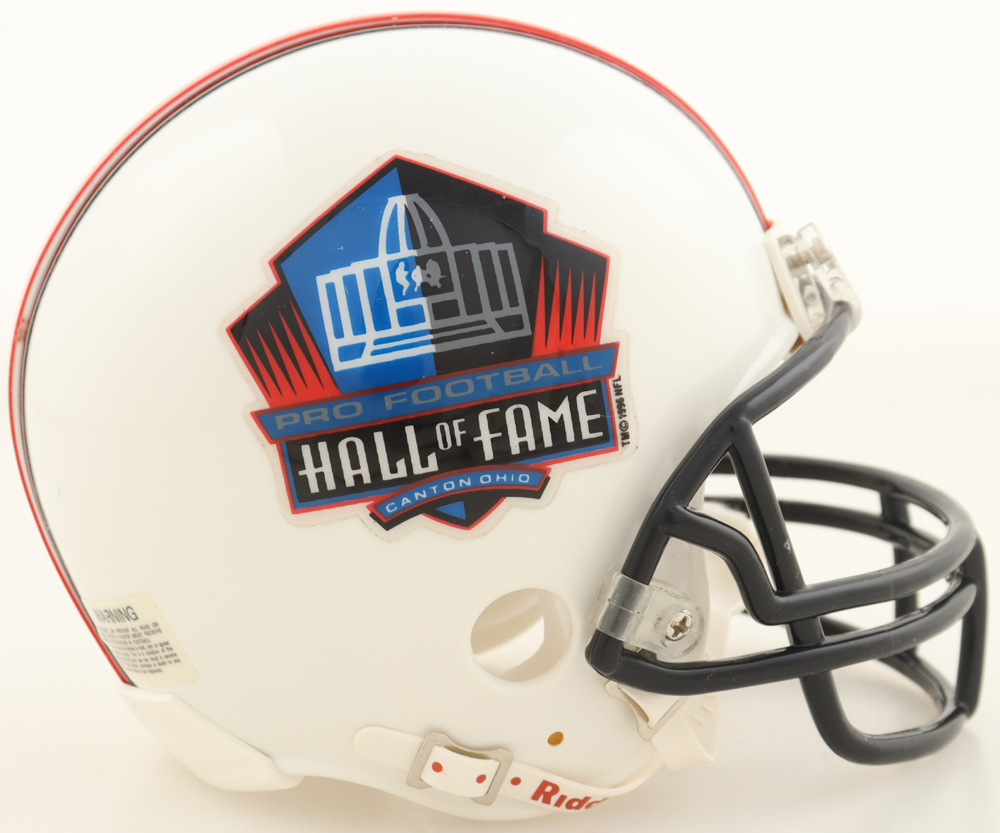 Riddell Hall of Fame logo mini helmet. Hand-signed and inscribed by Ed Sabol (D. 2015, HOF).