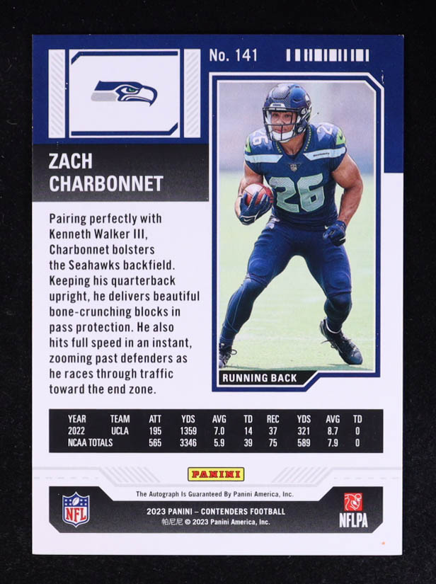 Zach Charbonnet 2023 Panini Contenders Optic Orange AU #141 #33/50 RC