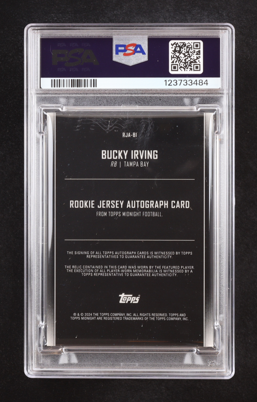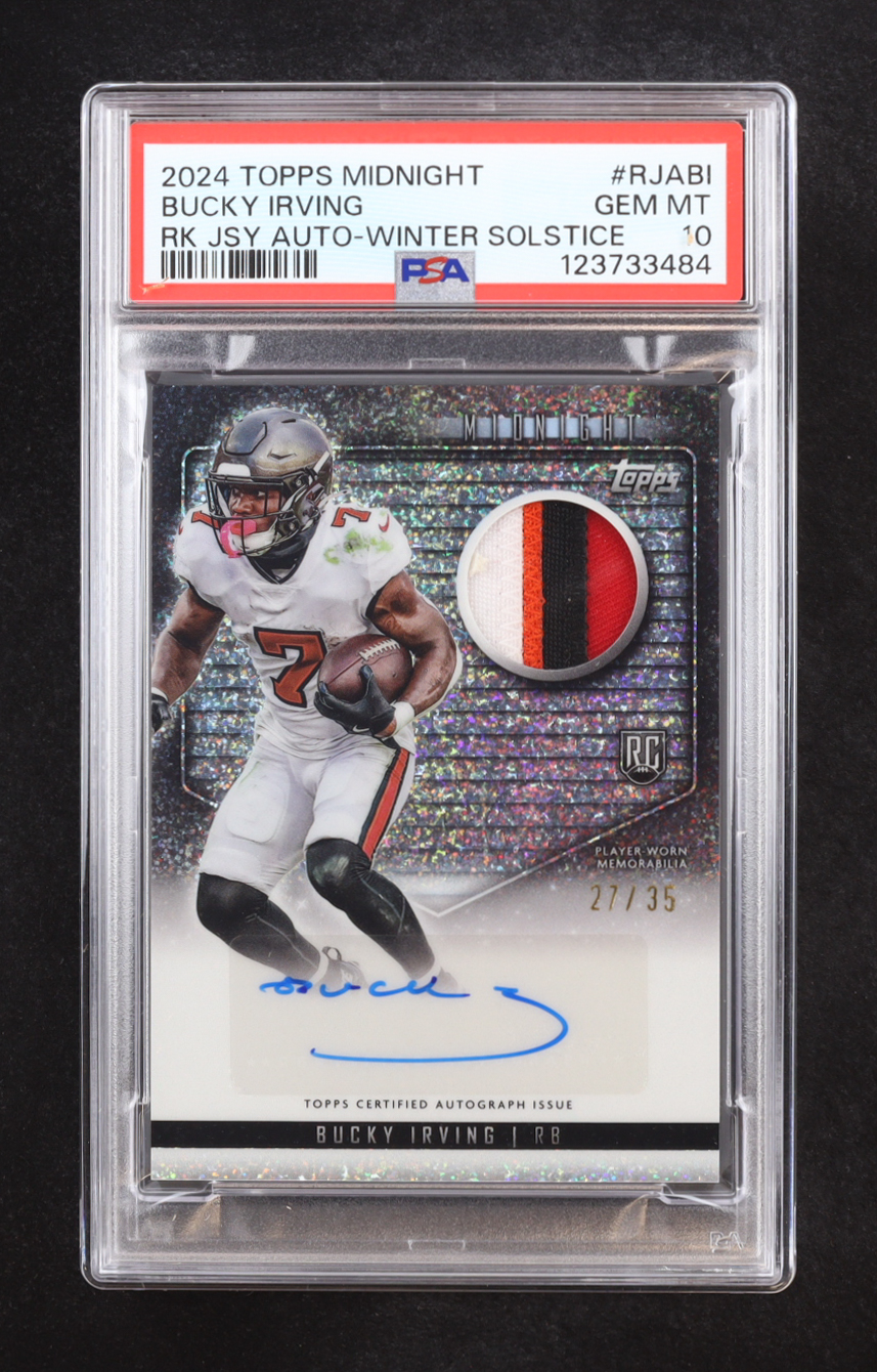 Bucky Irving 2024 Topps Midnight Rookie Jersey Winter Solstice Auto #RJABI RC #27/35 (PSA 10)