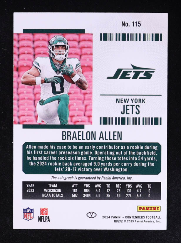 Braelon Allen 2024 Panini Contenders Variation Divisional Ticket #115 #10/99 RC