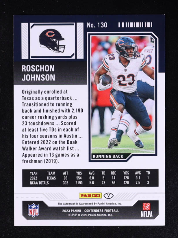 Roschon Johnson 2023 Panini Contenders Optic Rookie Ticket Variation Autographs #130 RC