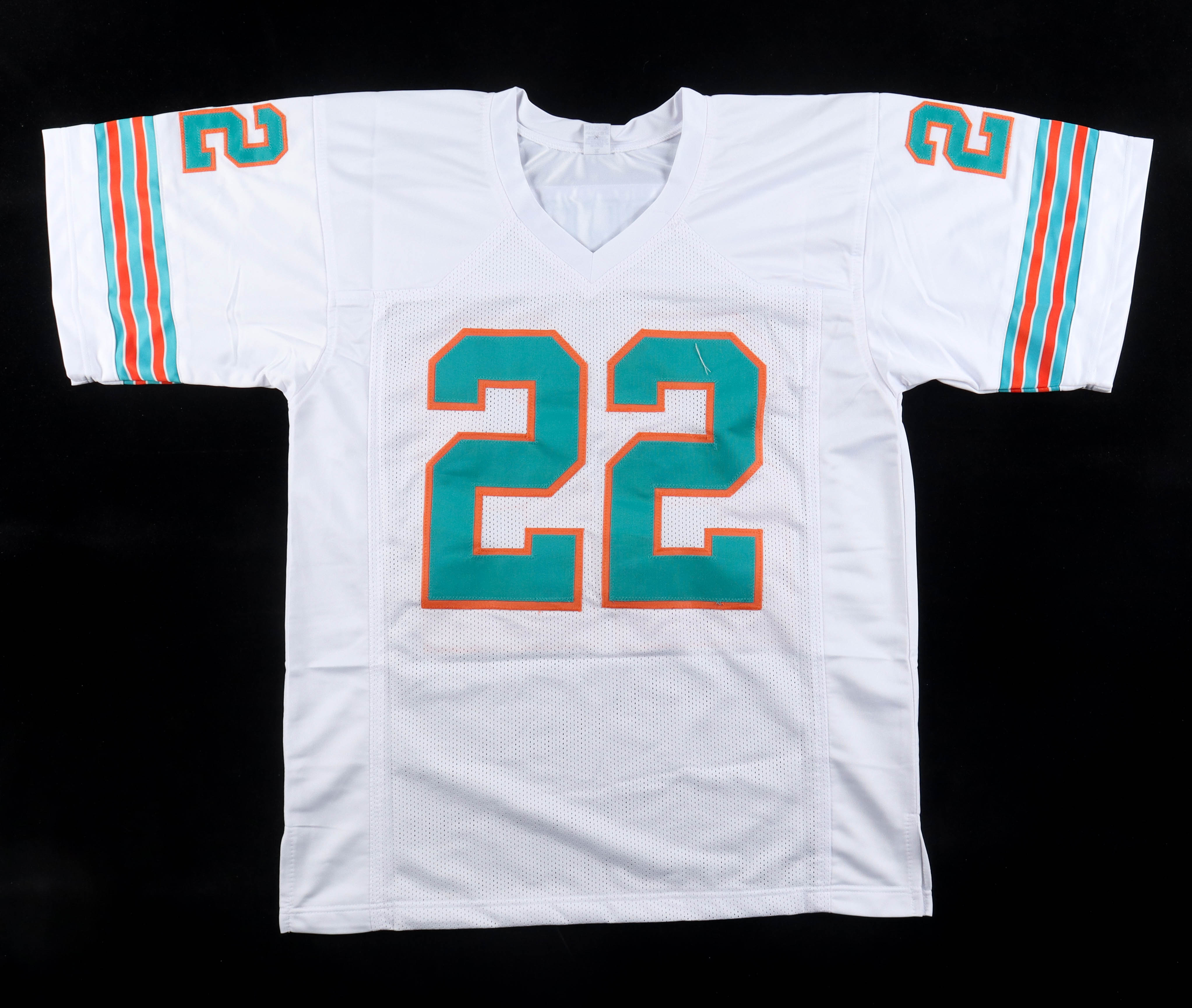 Custom jersey with everything sewn on, size XL. Hand-signed by Mercury Morris.