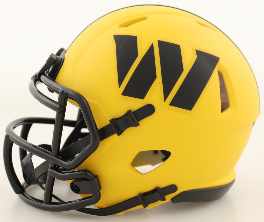 Riddell Washington Commanders Rave Alternate speed mini helmet. Hand-signed by Jacory Croskey-Merritt.