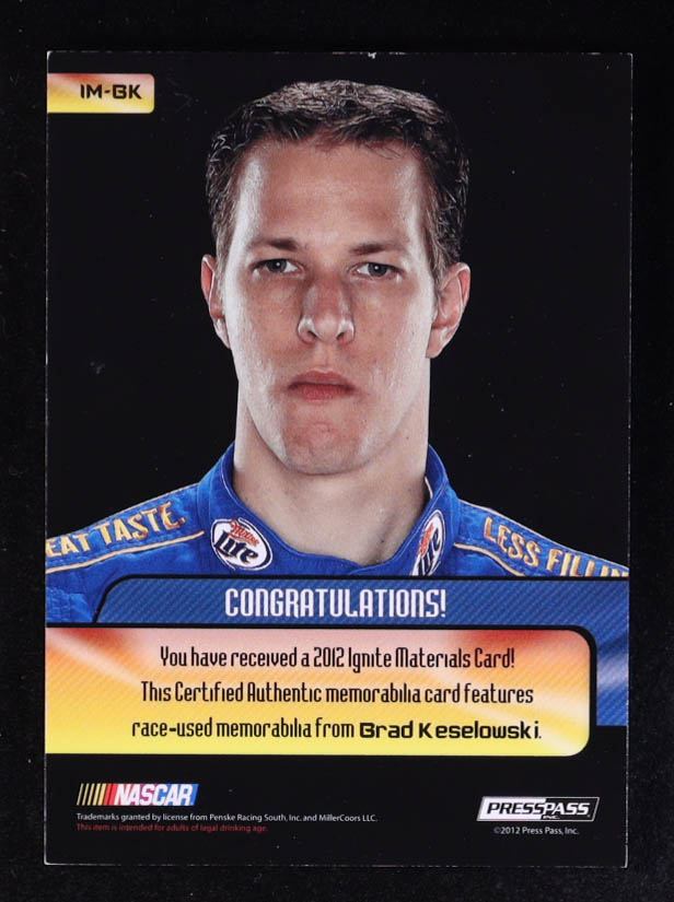 Brad Keselowski 2012 Press Pass Ignite Materials Silver #IMBK