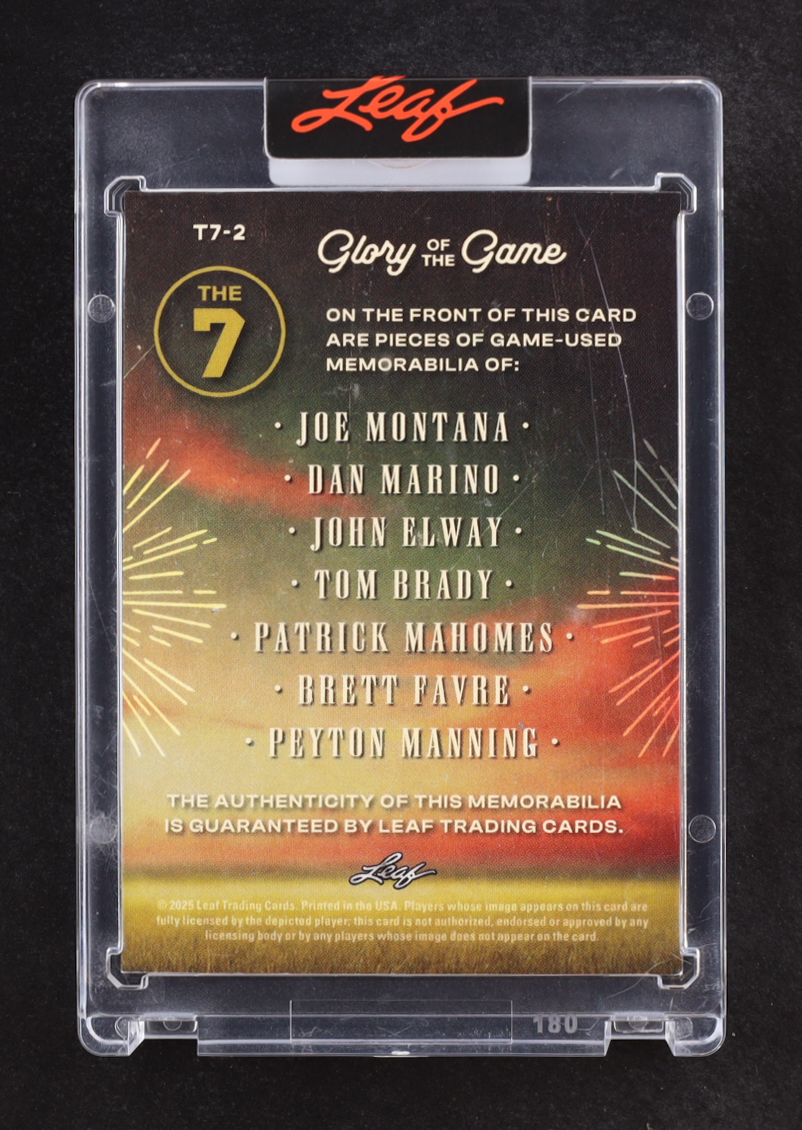 Joe Montana / Dan Marino / John Elway / Tom Brady / Patrick Mahomes / Brett Favre / Peyton Manning 2025 Leaf Glory of the Game The 7 Set USA Flag #T72 #1/5