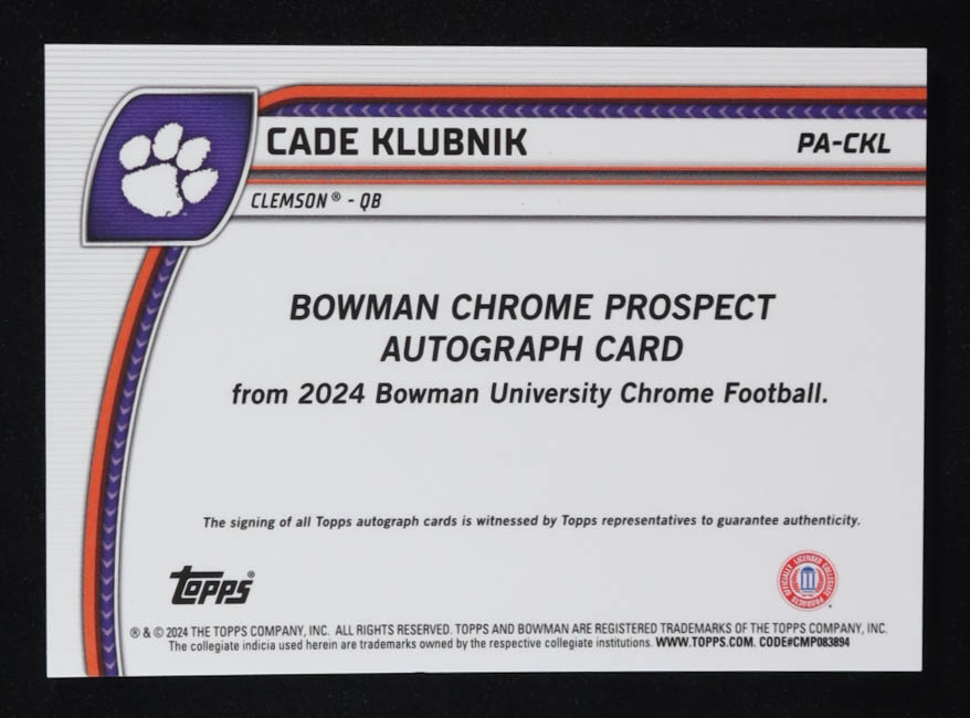 Cade Klubnik 2024 Bowman Chrome University Prospect Autographs Gold Shimmer Refractors #PACKL #08/50 RC