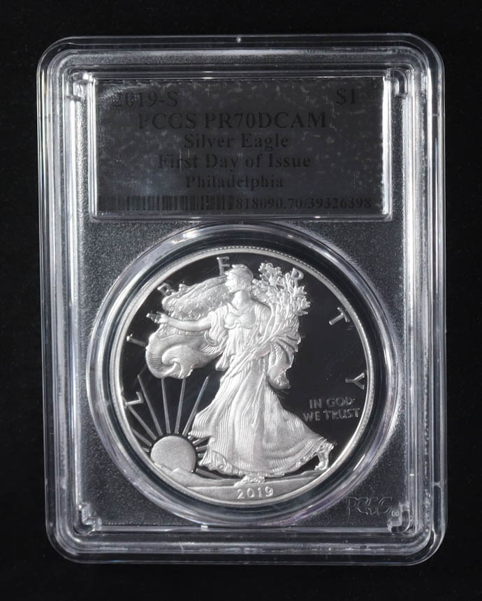 2019-W American Silver Eagle, First Day of Issue - Philadelphia (PCGS PR70DCAM)