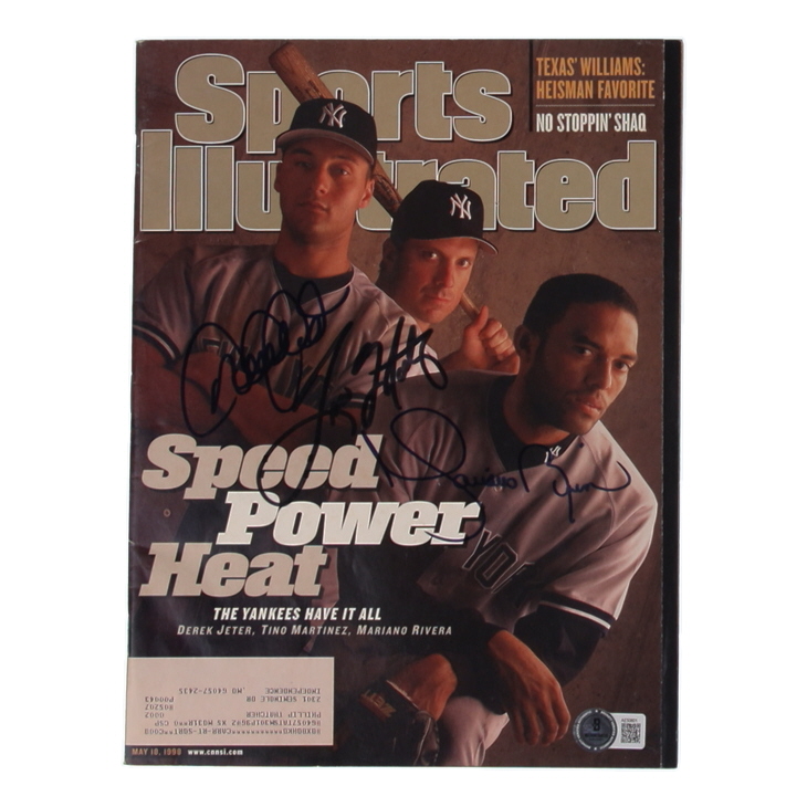 May 18, 1998 issue of Sports Illustrated Magazine. Hand-signed on the front cover by Derek Jeter, Mariano Rivera, and Tino Martinez (New York Yankees).