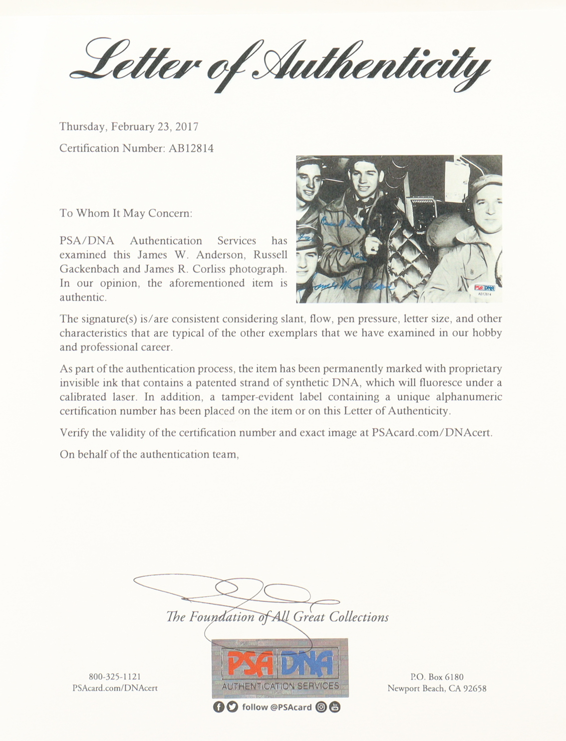 James Anderson, Russell Gackenbach, & James Corliss Signed WWII Big Stink C-12 Photo (PSA)