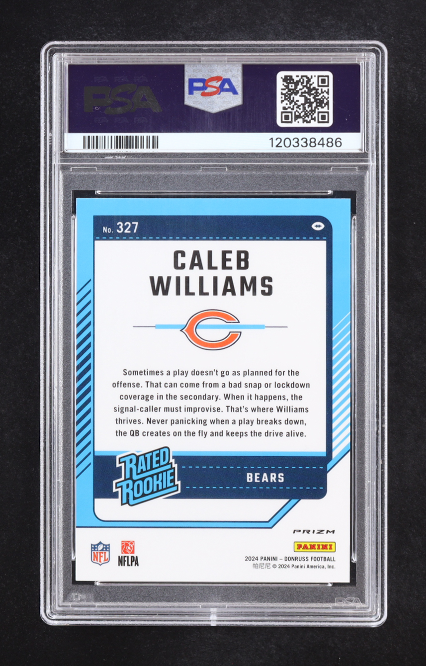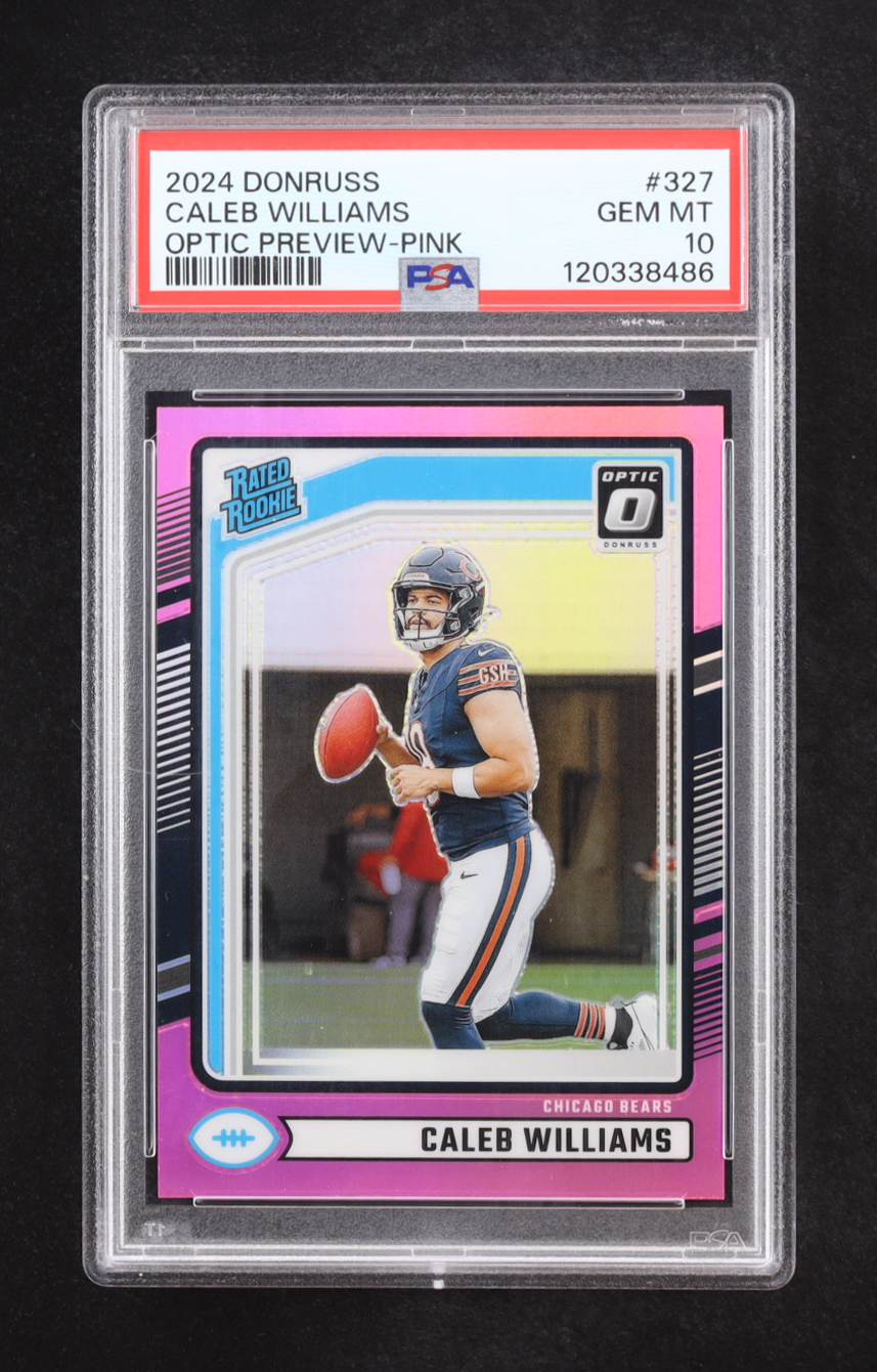 Caleb Williams 2024 Donruss Optic Preview-Pink Prizm RR #327 RC (PSA 10)