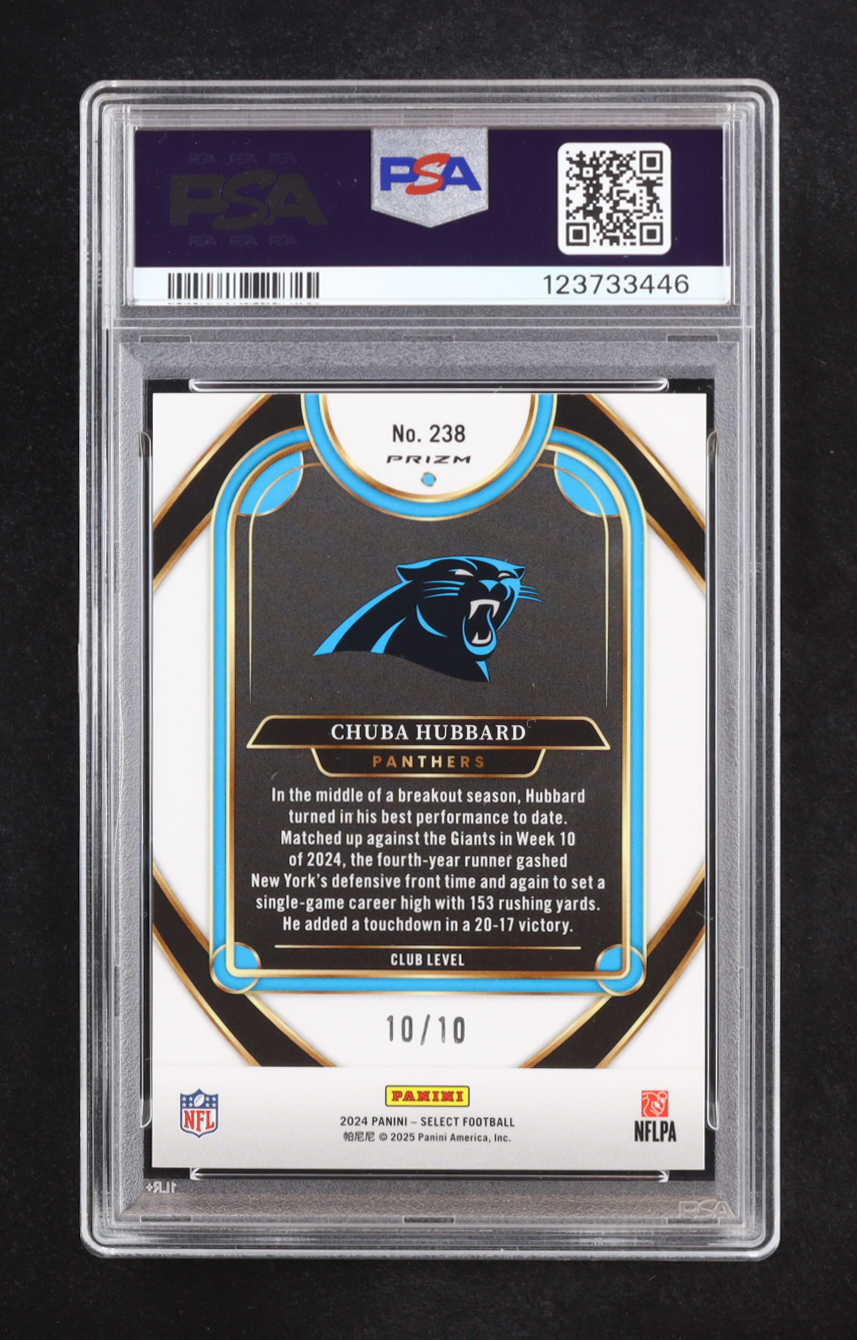 Chuba Hubbard 2024 Select Club Level Gold Disco #238 #10/10 (PSA 10)