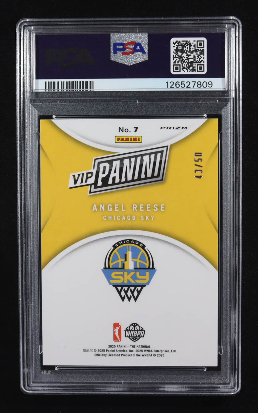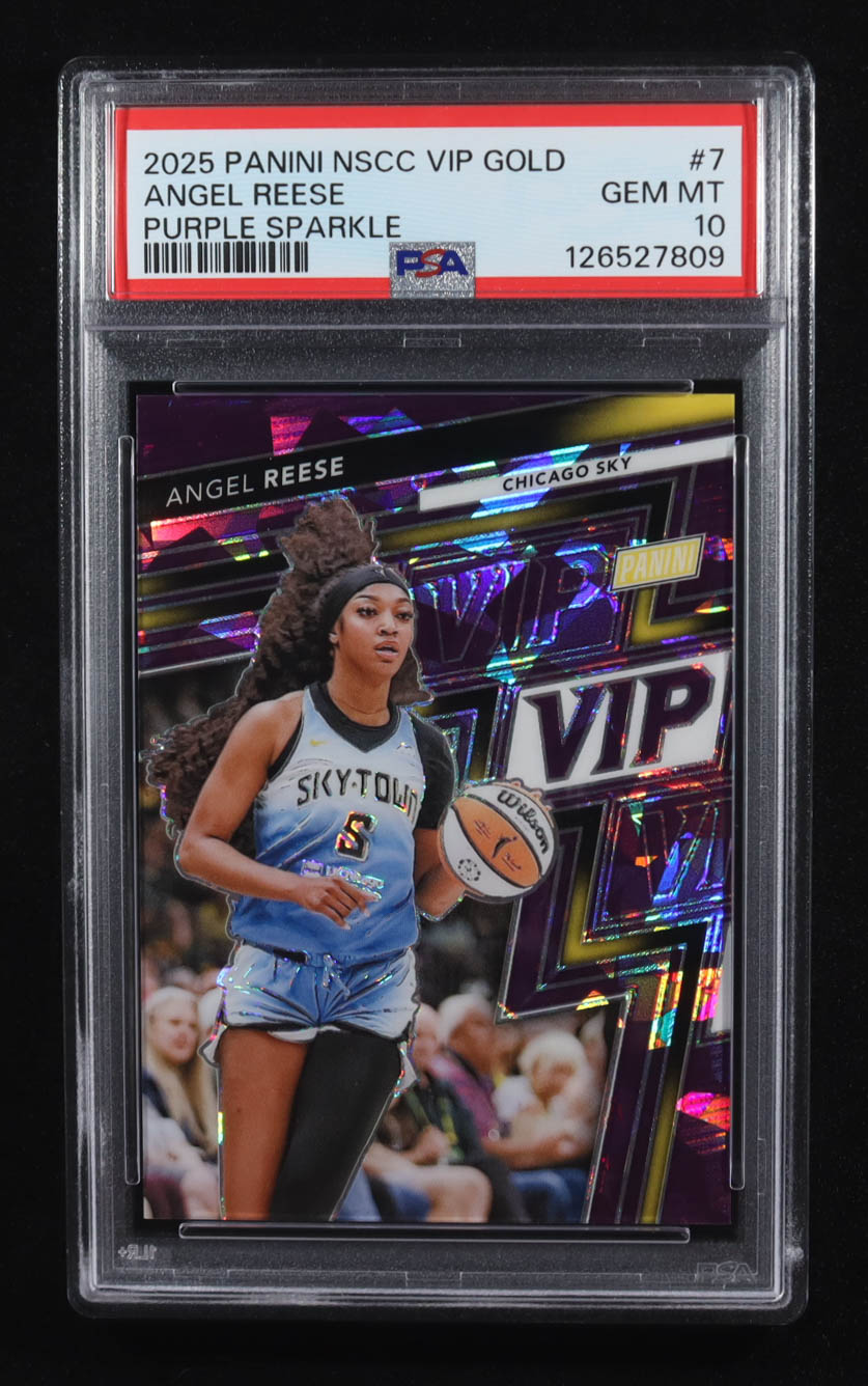 Angel Reese 2025 Panini National Convention VIP Gold Packs Purple Sparkle #7 #43/50 (PSA 10)