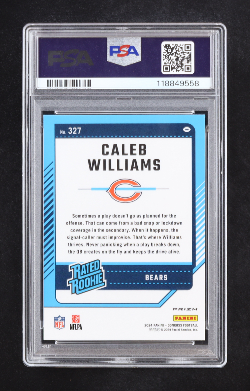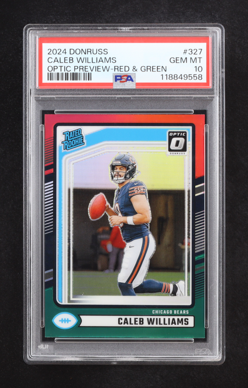 Caleb Williams 2024 Panini Donruss Optic Preview-Red & Green Prizm RR #327 RC (PSA 10)