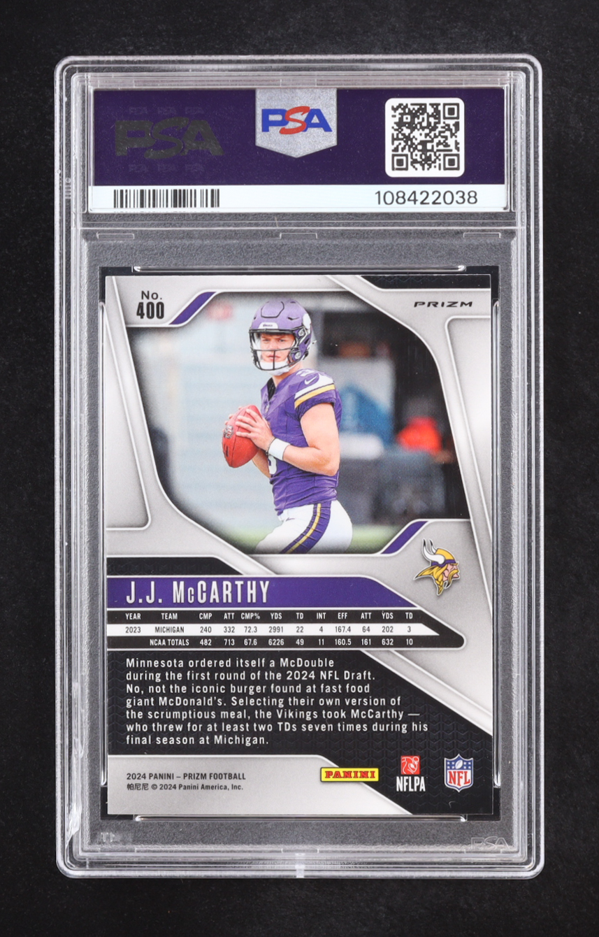 JJ McCarthy 2024 Panini Prizm Orange Disco #400 RC (PSA 10)