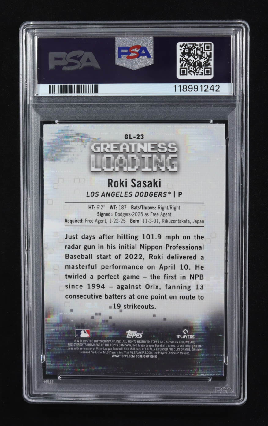 Roki Sasaki 2025 Bowman Chrome Greatness Loading #GL23 RC (PSA 9)