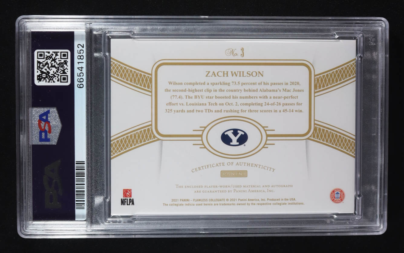 Zach Wilson 2021 Panini Flawless Collegiate Flawless Rookie Patch Autographs Brand Logo #3 #1/1 RC (PSA 8)