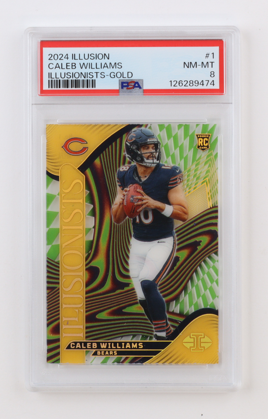 Caleb Williams 2024 Panini Illusion Gold Illusionists #1 RC #19/25 (PSA 8)
