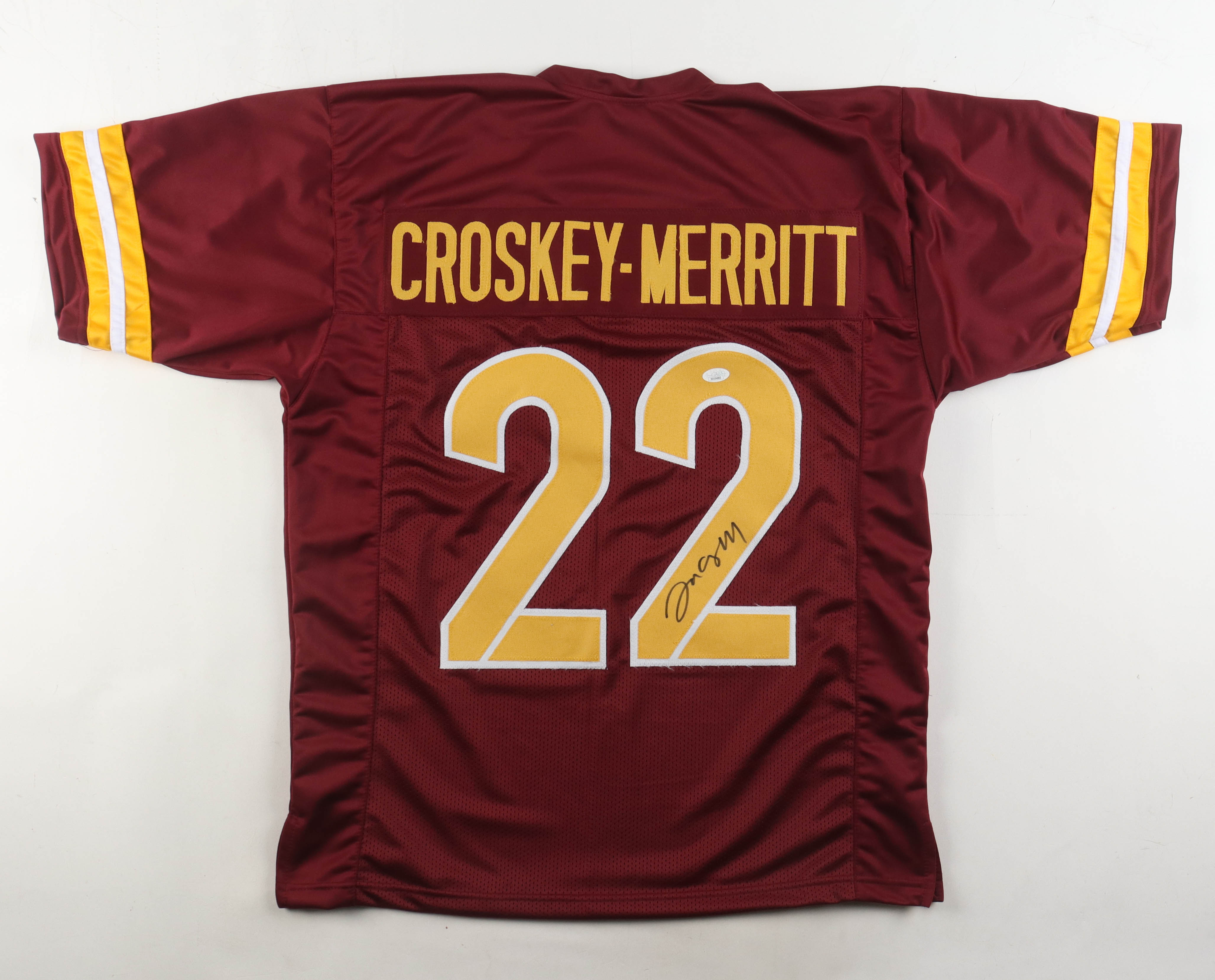 Custom jersey with everything sewn on, size XL. Hand-signed by Jacory Croskey-Merritt.