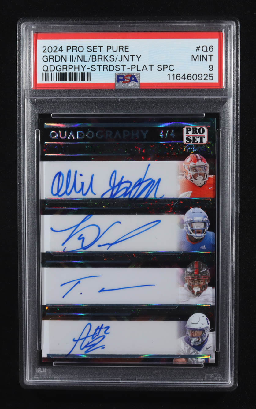 Ollie Gordon II / Devin Neal / Tahj Brooks / Ashton Jeanty 2024 Pro Set Pure Quadography Stardust Spectrum Platinum #Q6 #4/4 RC (PSA 9)