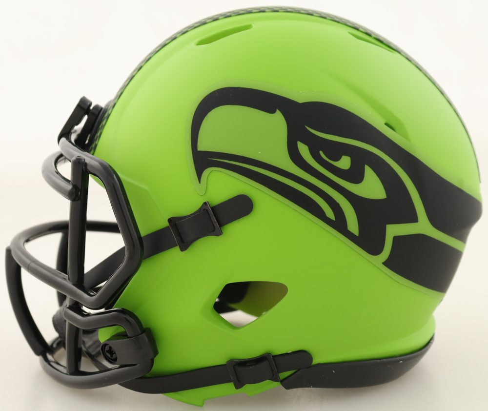 Riddell Seattle Seahawks Rave Alternate Speed Mini Helmet. Hand-signed and inscribed by Steve Largent (HOF).