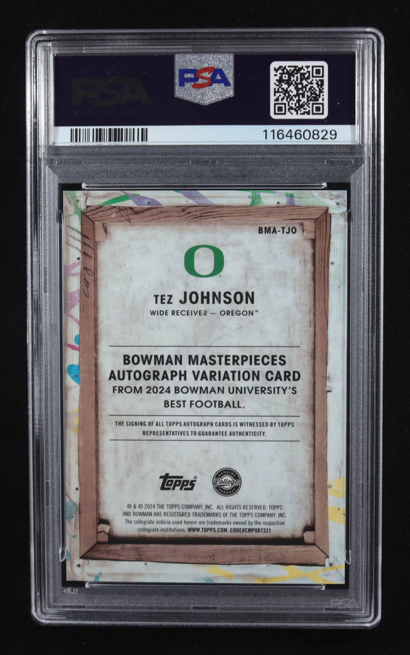 Tez Johnson 2024 Bowman's Best University Masterpieces Autographs Gold Refractors #BMATJO #30/50 RC (PSA 10)