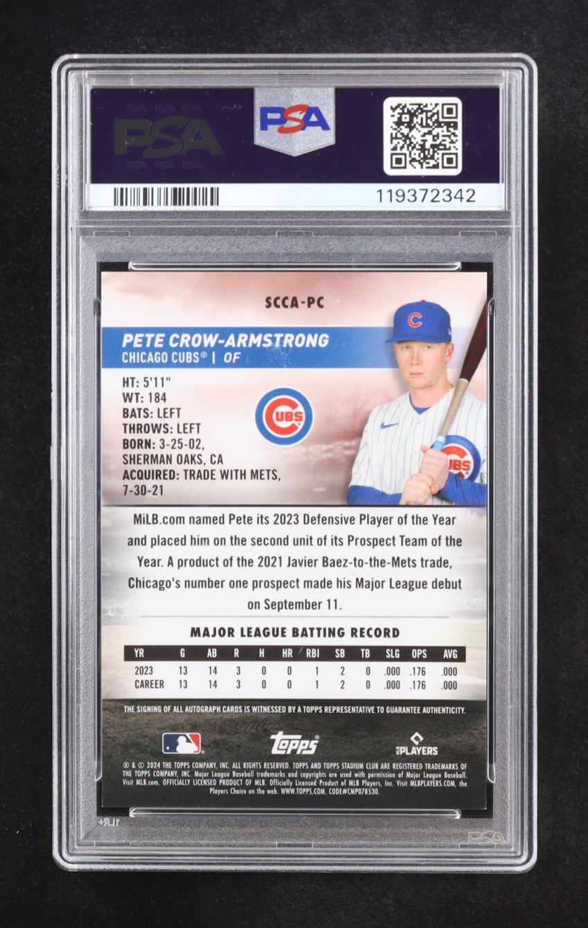 Pete Crow-Armstrong 2024 Stadium Club Chrome Autographs #SCCAPC RC (PSA | Auto Grade PSA 10)