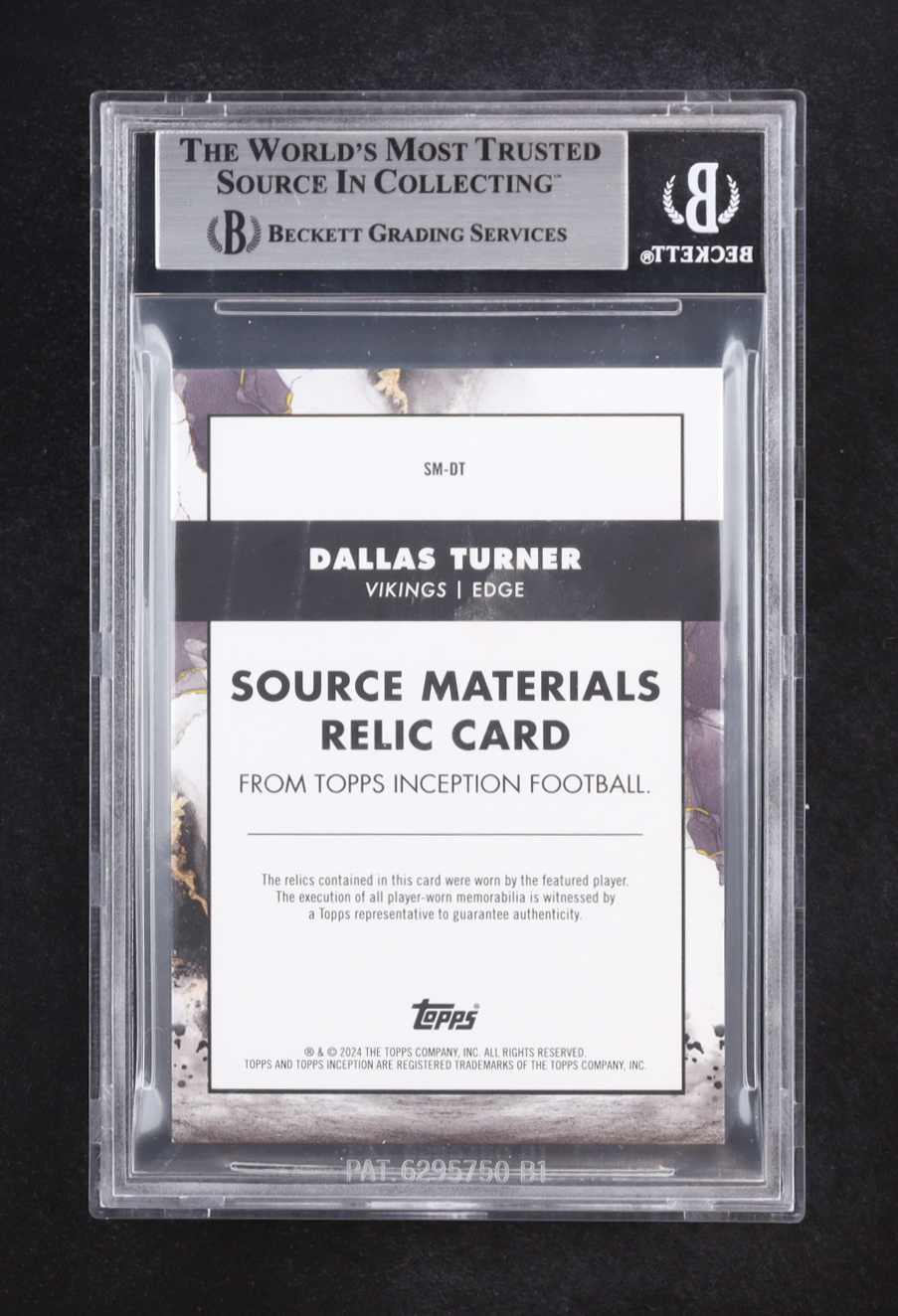 Dallas Turner 2024 Topps Inception Source Materials Purple Memorabilia #SM-DT RC #076/125 (BGS 8)