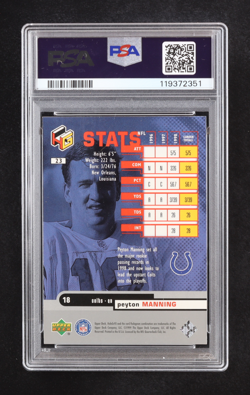 Peyton Manning Signed 1999 Upper Deck HoloGrFX #23 (PSA Authentic | Auto Grade PSA 10)
