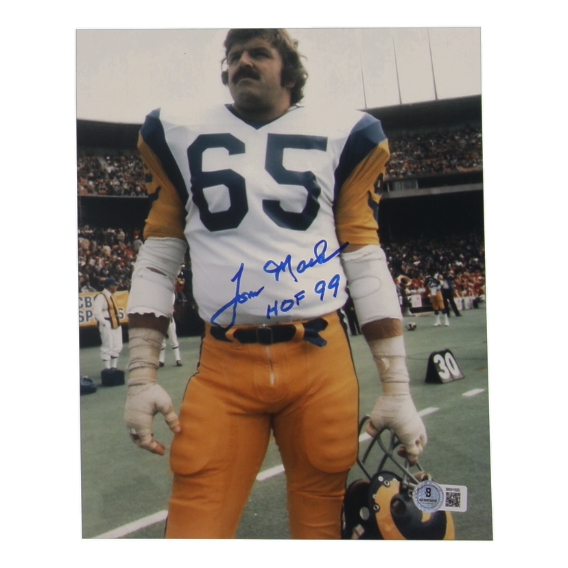 Photo measures 8" x 10" in size. Hand-signed and inscribed by Tom Mack (Los Angeles Rams, HOF).