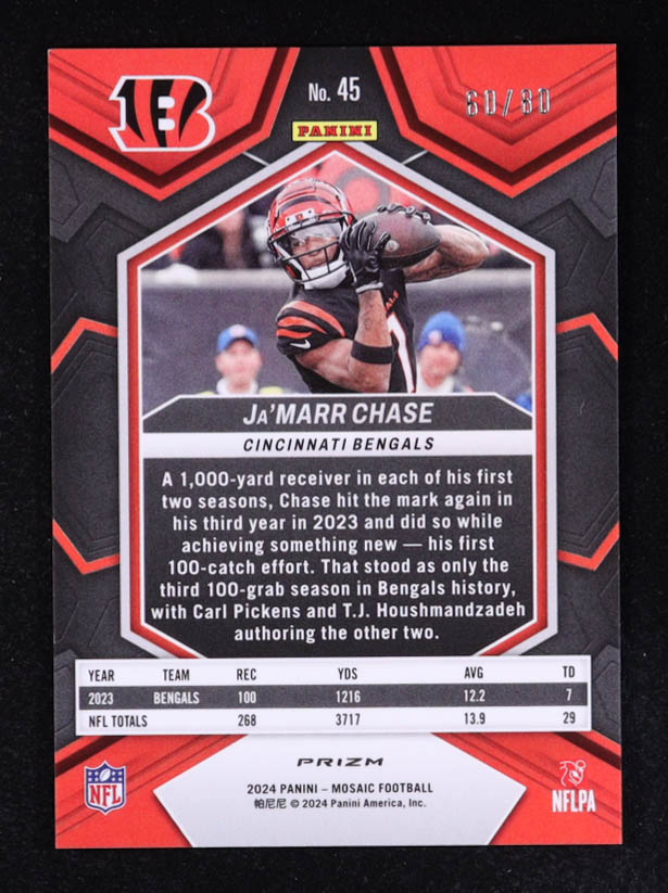 Ja'Marr Chase 2024 Panini Mosaic Mosaic Choice Fusion Red and Yellow #45 #60/80