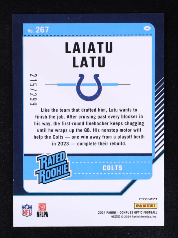 Laiatu Latu 2024 Donruss Optic Aqua #267 #215/299 RR RC