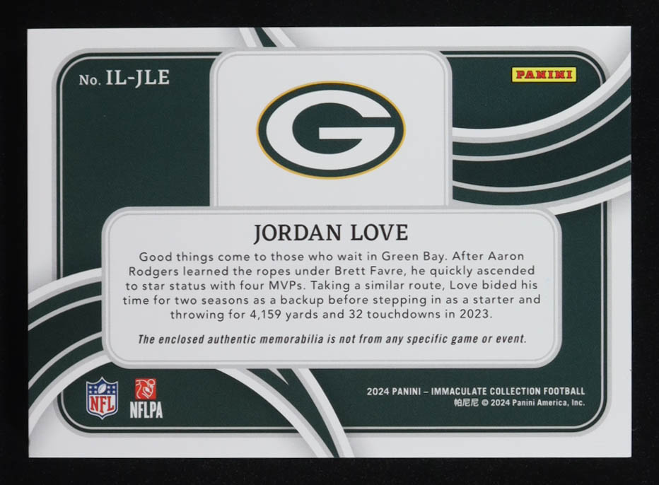 Jordan Love 2024 Immaculate Collection Immaculate Patches #8 #2/25