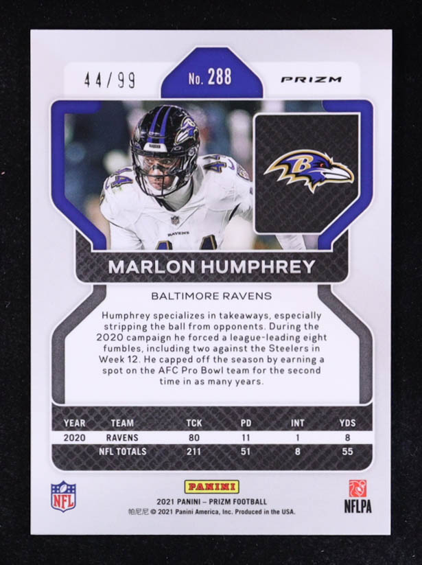 Marlon Humphrey 2021 Panini Prizm Prizms Blue Ice #288 #44/99