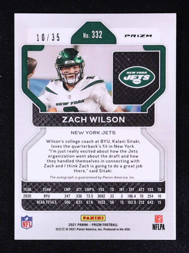 Zach Wilson 2021 Panini Prizm Rookie Autographs Prizms Red Shimmer #332 #10/35 RC