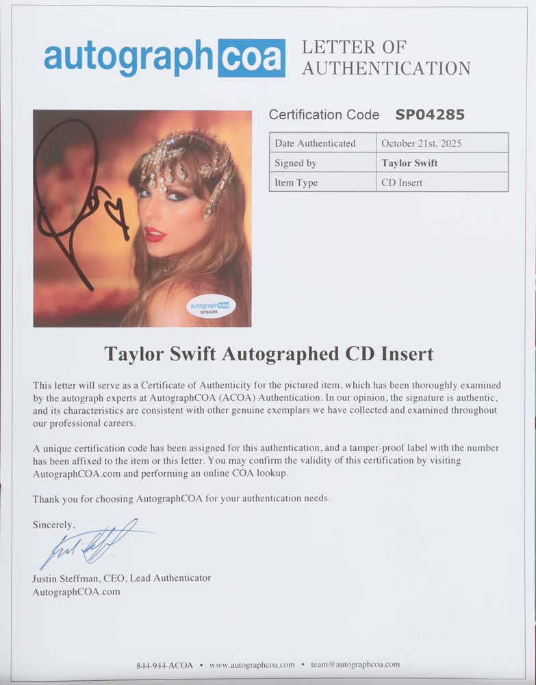 Taylor Swift Signed Custom Framed "The Life of a Showgirl" CD Album Insert Display with Disc (ACOA)