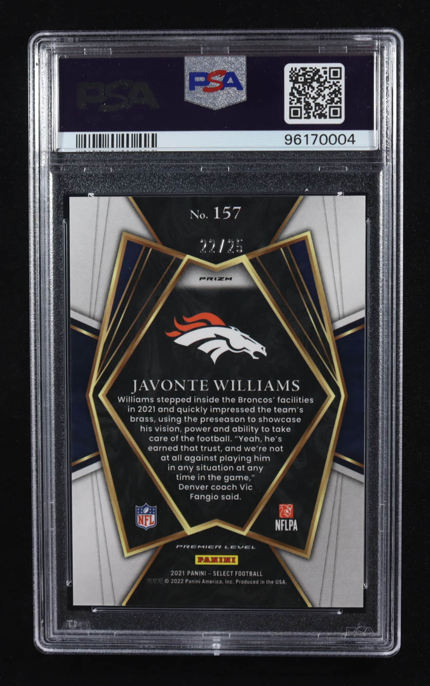 Javonte Williams 2021 Select Prizm Tie Dye #157 #22/25 RC (PSA 10)