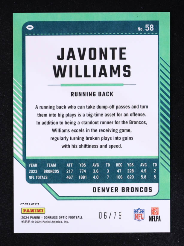Javonte Williams 2024 Donruss Optic Orange Scope #58 #06/79
