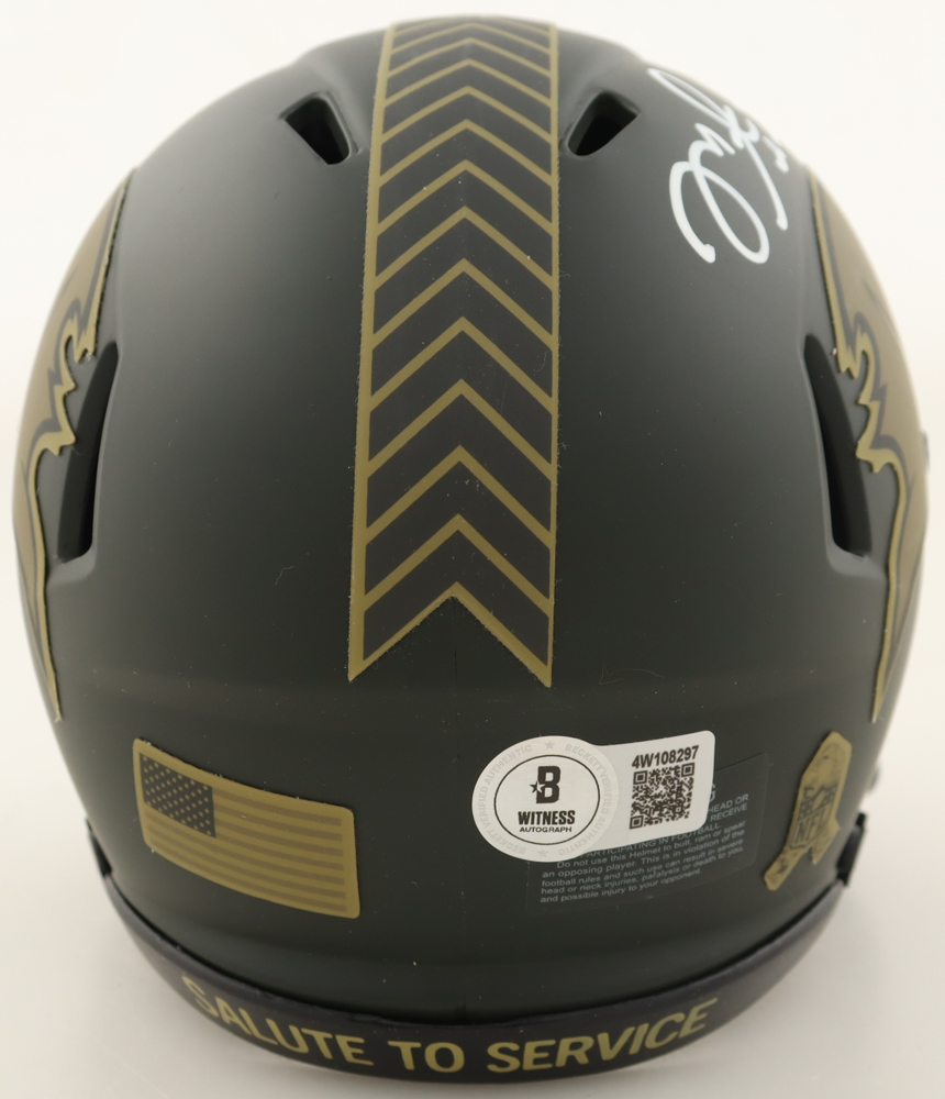 Mike Alstott Signed Buccaneers Salute to Service Alternate Speed Mini Helmet (Beckett)