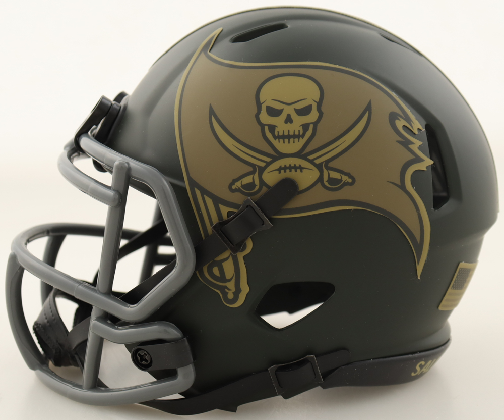 Riddell Tampa Bay Buccaneers Salute to Service Alternate Speed Mini Helmet. Hand-signed by Mike Alstott.