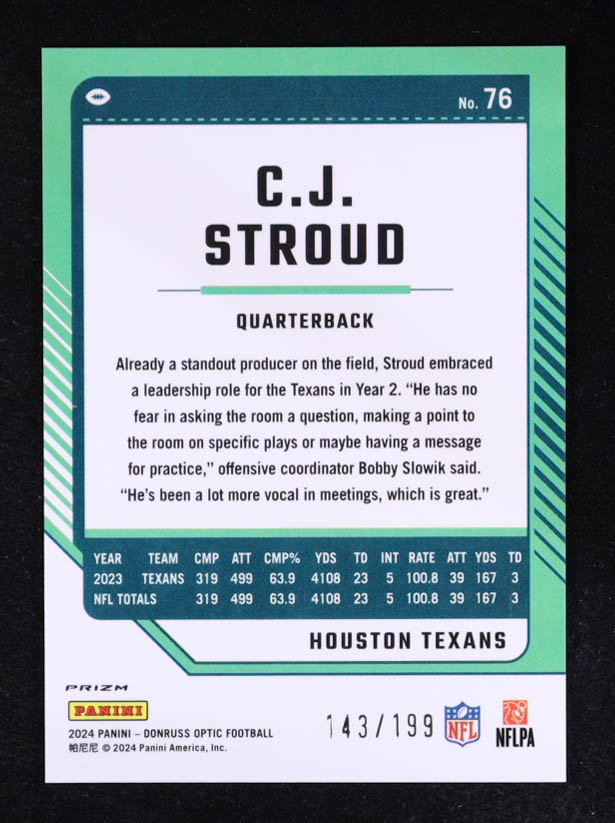 CJ Stroud 2024 Donruss Optic Blue #76 #143/199