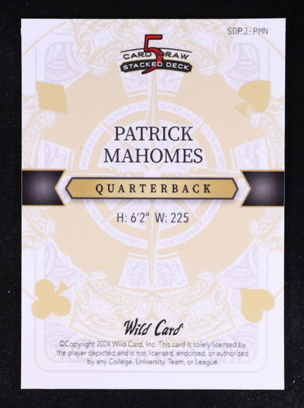 Patrick Mahomes 2024 Wild Card 5 Card Draw Stacked Deck White Crystal #SDPJPMN #1/1