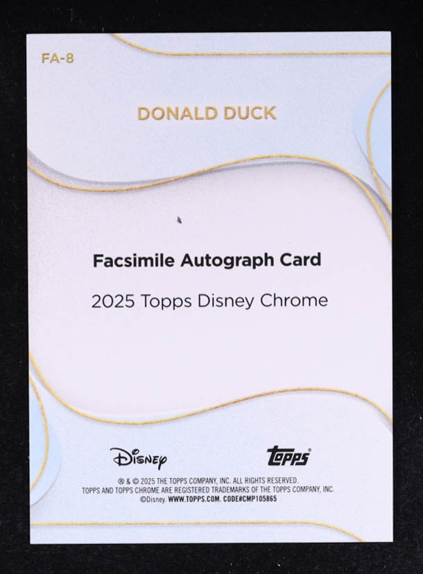 Donald Duck 2025 Topps Chrome Disney Facsimile Autographs Orange Refractors #FA8 #13/25