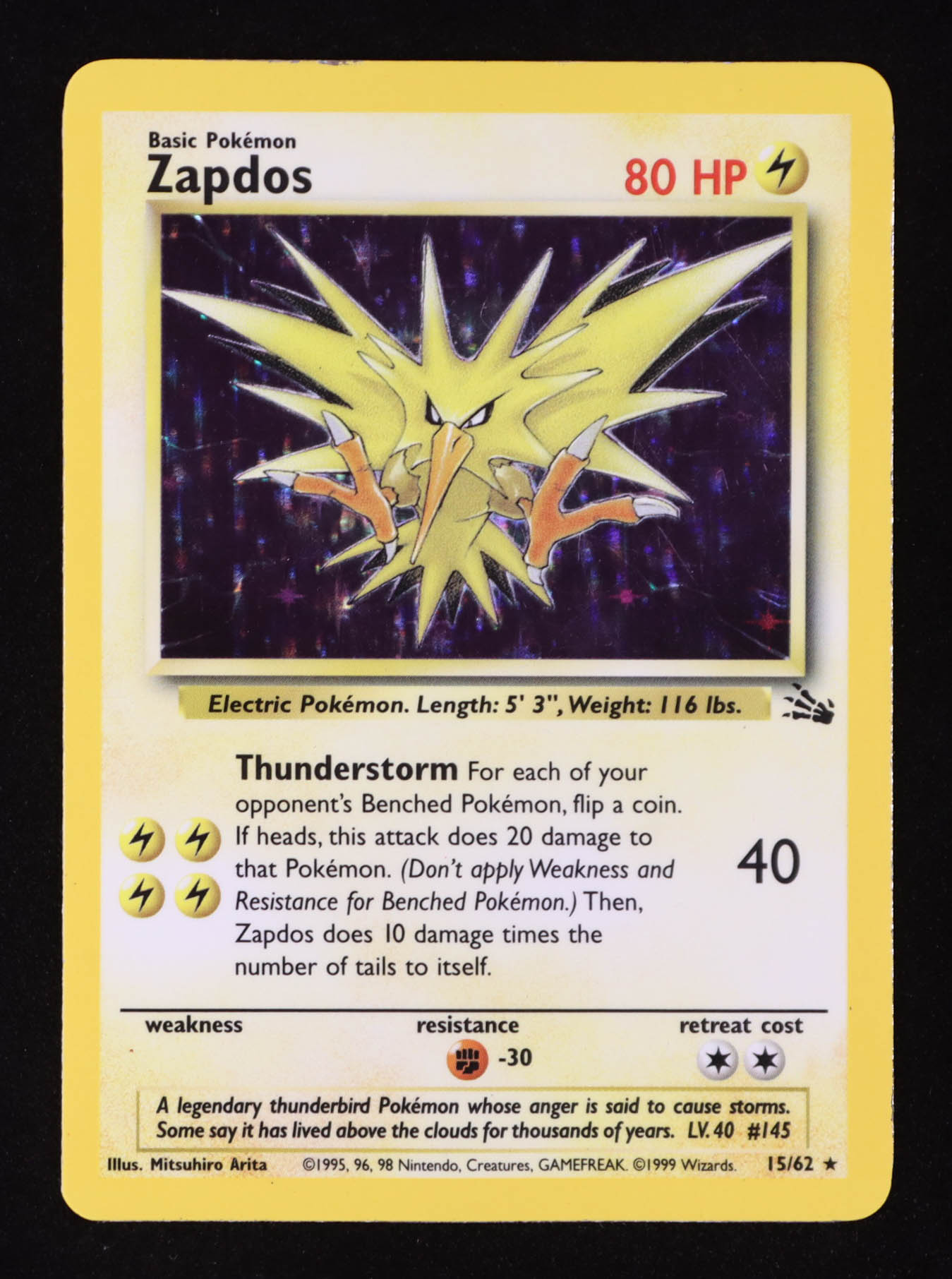 Zapdos 1999 Pokemon Fossil Unlimited #15 Holo