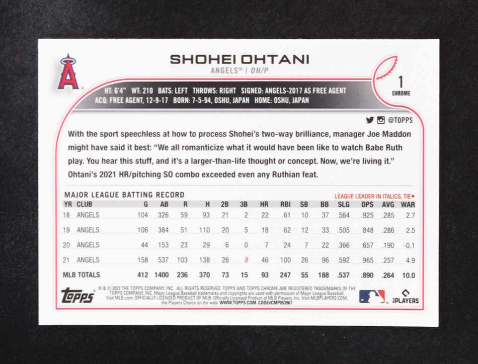 Shohei Ohtani 2022 Topps Chrome Sepia Refractor #1