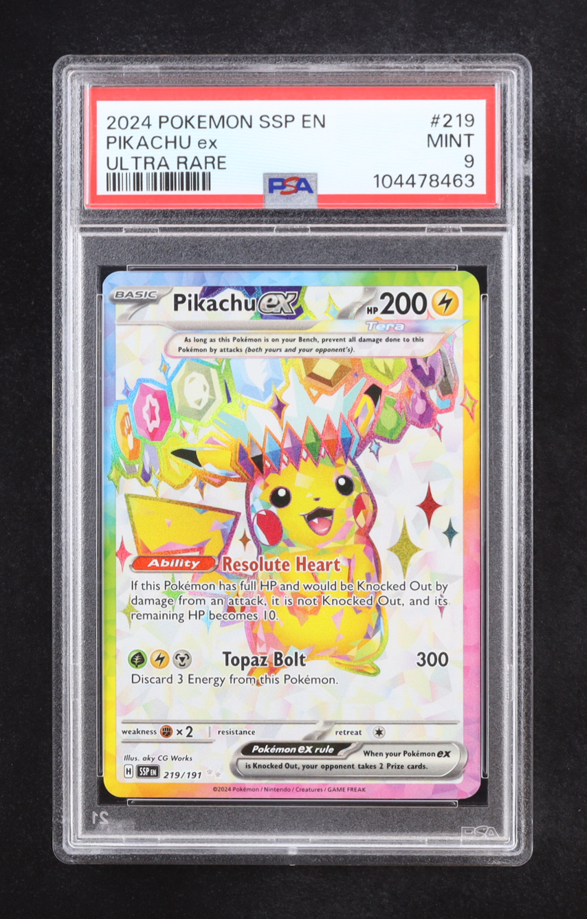 Pikachu ex 2024 Pokemon Scarlet and Violet Surging Sparks #219 (PSA 9)