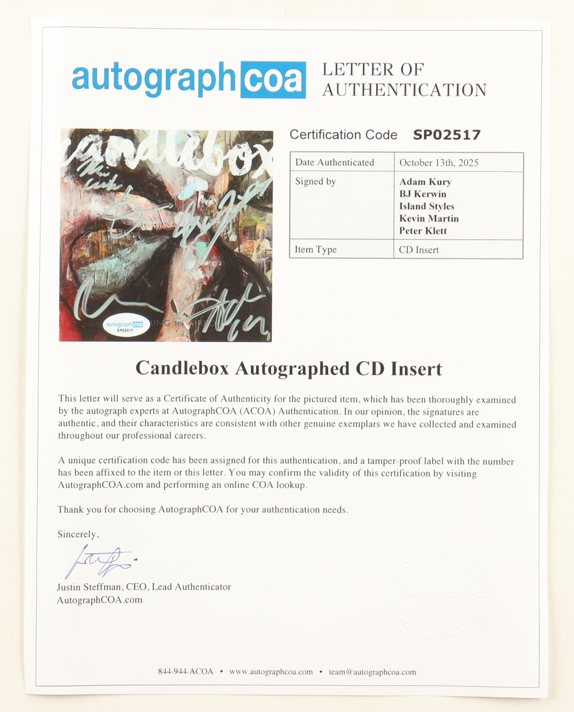 Candlebox "Disappearing in Airports" Custom Framed CD Insert Display Band-Signed By (5) with Adam Kury, BJ Kerwin, Island Styles, Kevin Martin (ACOA)