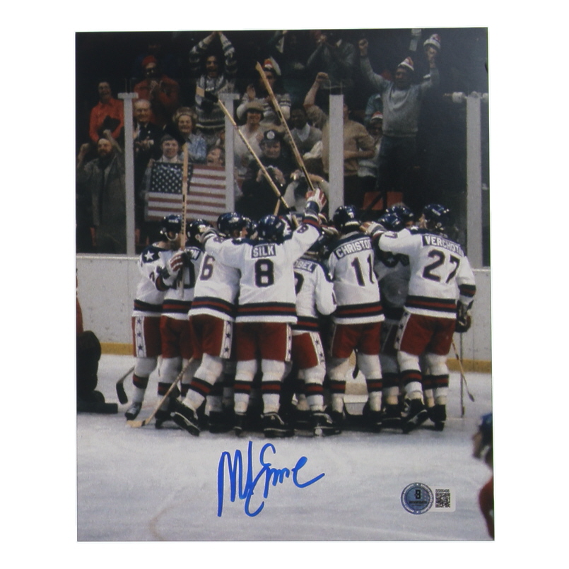 Photo measures 8" x 10" in size. Hand-signed by Mike Eruzione.