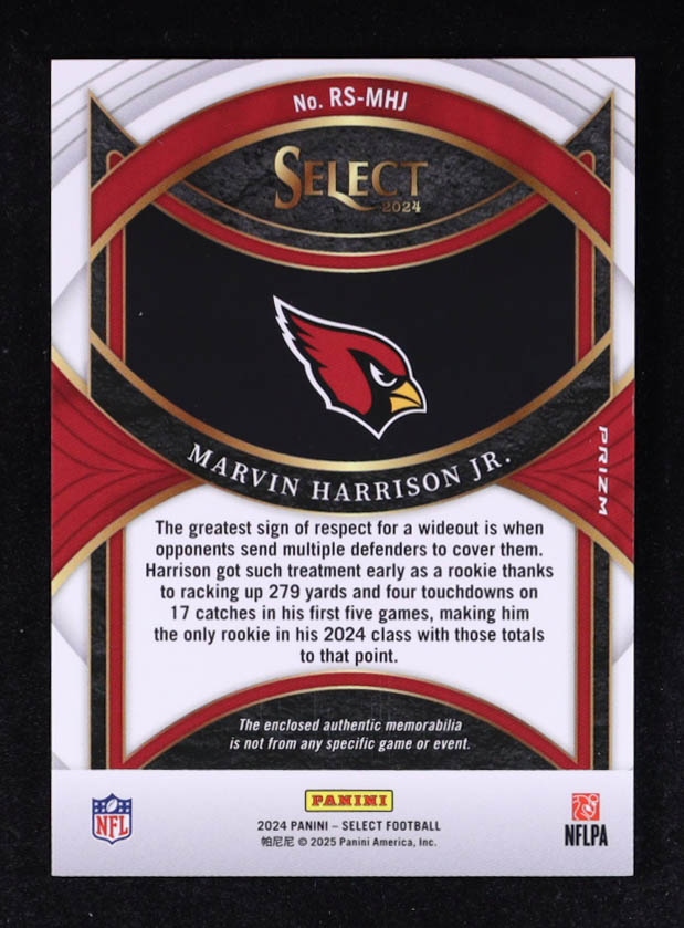 Marvin Harrison Jr. 2024 Select Rookie Swatches Prizm Red #22 RC